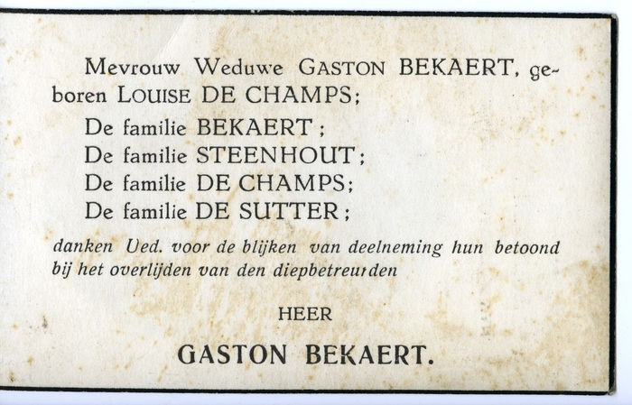 Gaston Bekaert is geboren in 1901. Hij overleed in 1937.