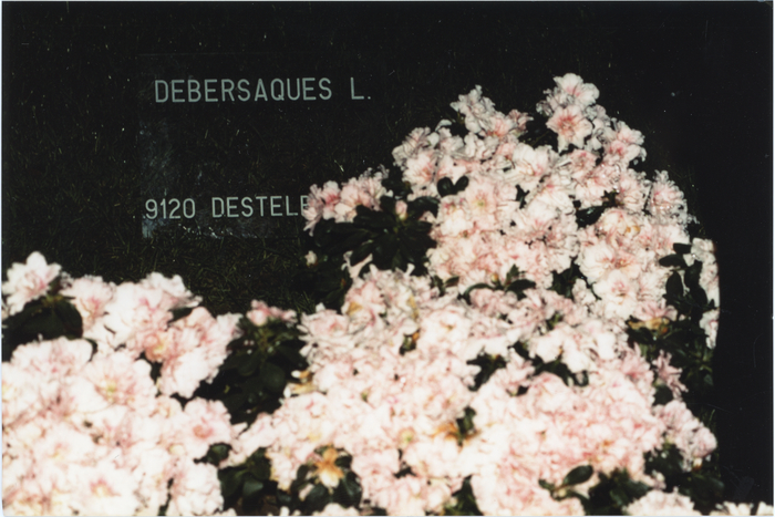 Stand van bloemist Debersaques op de Gentse Floraliën van 1990 in Flanders Expo. De bloemisterij nam jaarlijks deel aan de Floraliën en verwierf zo regelmatig nieuwe klanten. De deelnemers kregen een onderhoudskaart waarmee ze 's morgens en 's avonds toegang kregen tot de hal om de planten te gieten. Elke bloemist stond in voor het onderhuid van zijn stand.