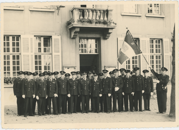 Groepsfoto brandweerkorps van Lochristi in september 1959.