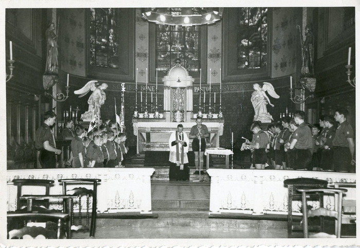 De leden van de Chiro van Melle bij een eucharistieviering ter gelegenheid van de belofte aflegging in de Sint Martinuskerk te Melle.