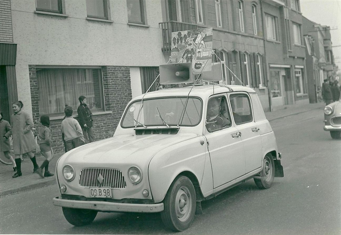 Een Renault R4 in de Bacchusstoet, Sint-Lievens-Houtem, 1965