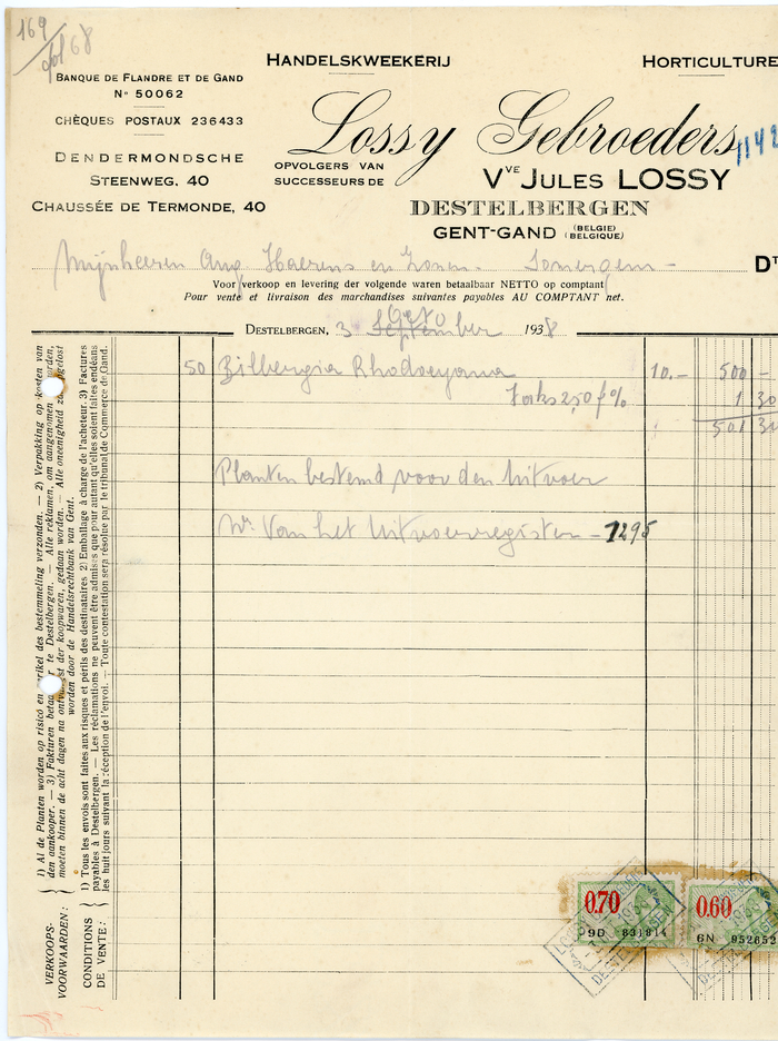 Factuur van bloemisterij Lossy op de Dendermondesteenweg van planten voor uitvoer.