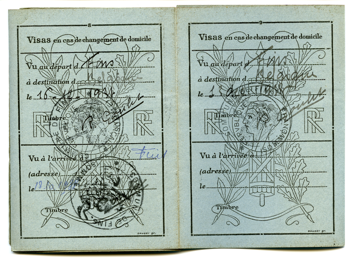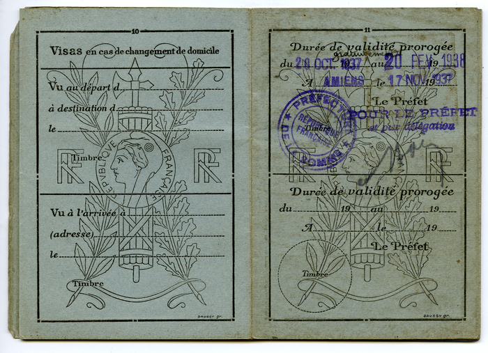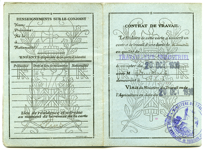 Franse identiteitskaart van Albert Glorieus. Hij was seizoenarbeider en werkte in de suikerfabriek van het Franse dorp Fins.