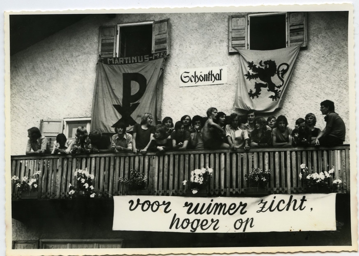 Groepsfoto op buitenlandse reis, Tirol, 1973