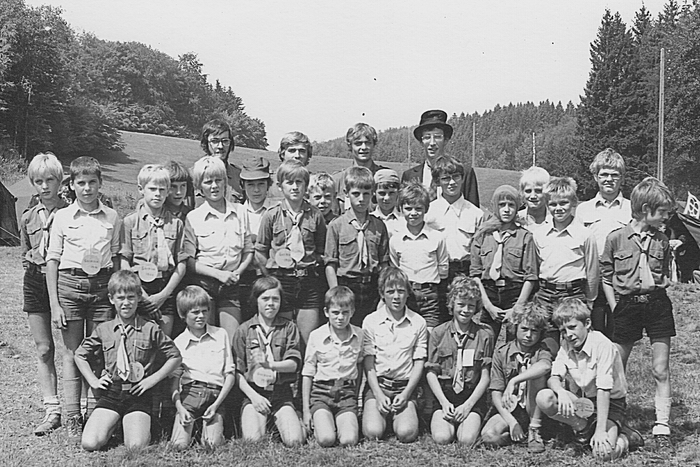 Groepsfoto rakkers chiro Melle, Guirsch, 1975