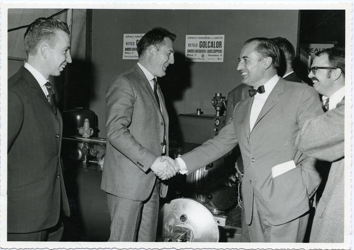 Van links naar rechts: louis Coppens (?), Andre Van Boven, Roger Otte, Notaris Verbruggen