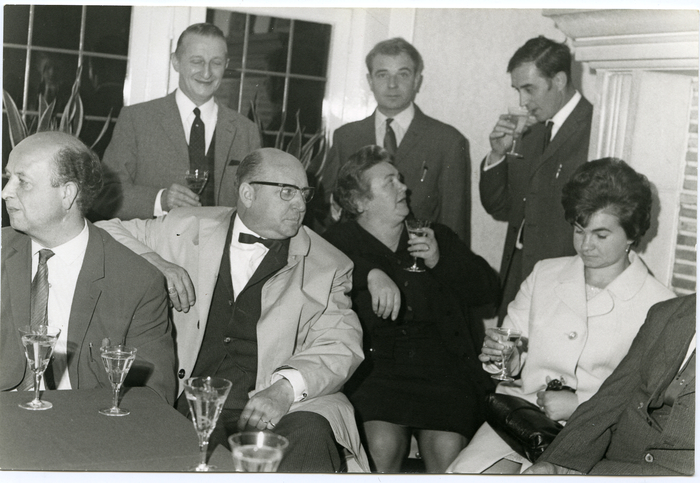 Van links naar rechts Roger Goossens, Roger Schockaert, Mevr Otte, Rene De Moereloose, Gabrielle Vermassen, Annie Meganck.