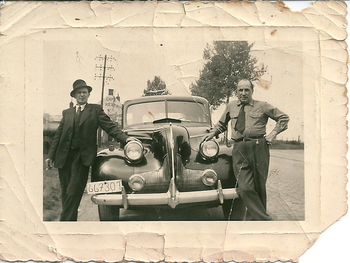 Jozef De Saedeleer aan een wagen, Sint-Lievens-Houtem, 1940-1950