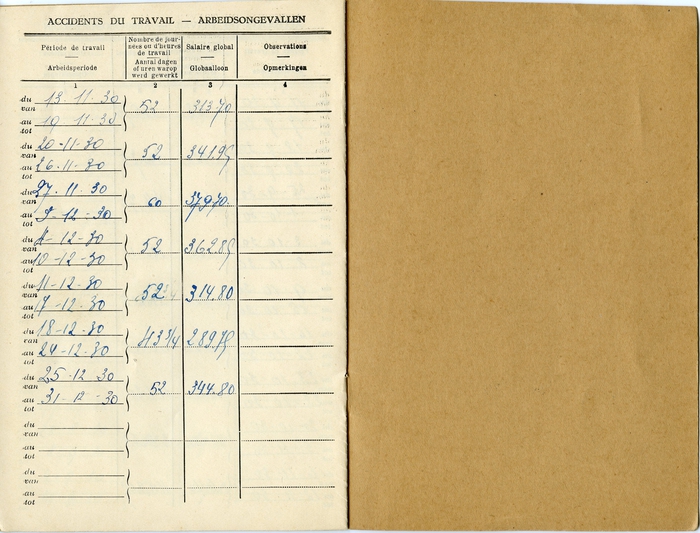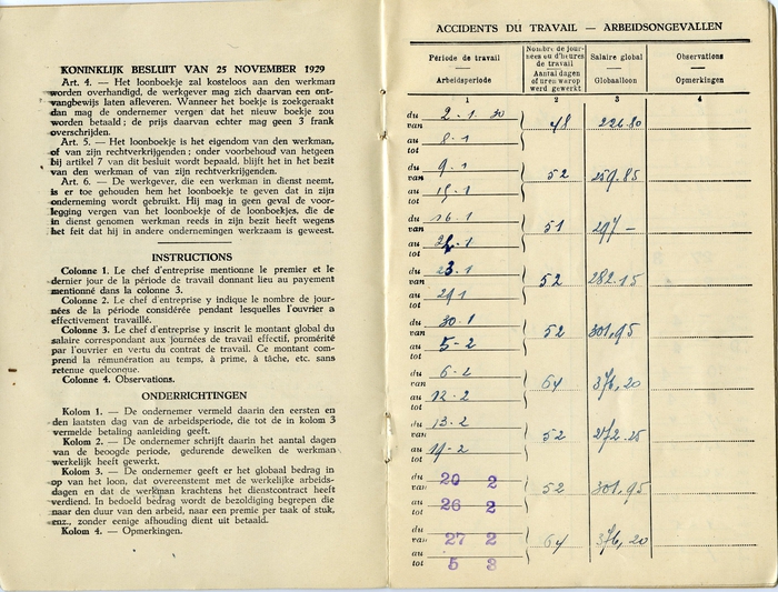 Loonboekje van Gustave Westelinck, werknemer bij de Société Industrielle de la Cellulose (SIDAC) in Gent. Gustave ging bij de Sidac aan de slag nadat hij de seizoenarbeid vaarwel zei.