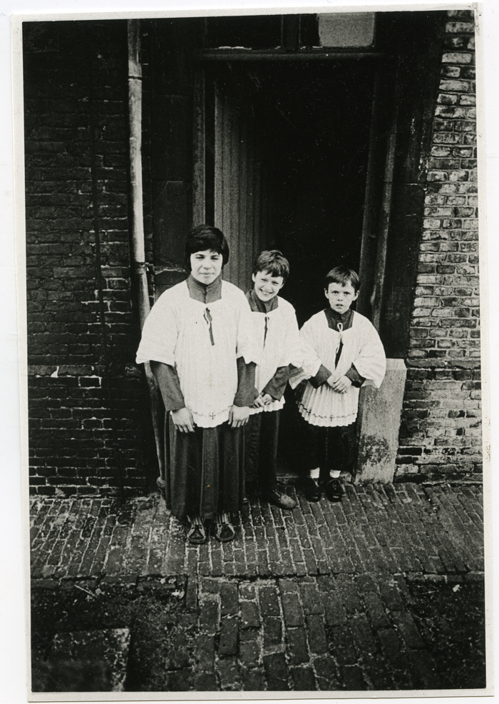 Misdienaars van de Sint-Bonifatiuskerk van Munte. Van links naar rechts: Smekens, Eeckhout en Geert(?) Van De Sype.