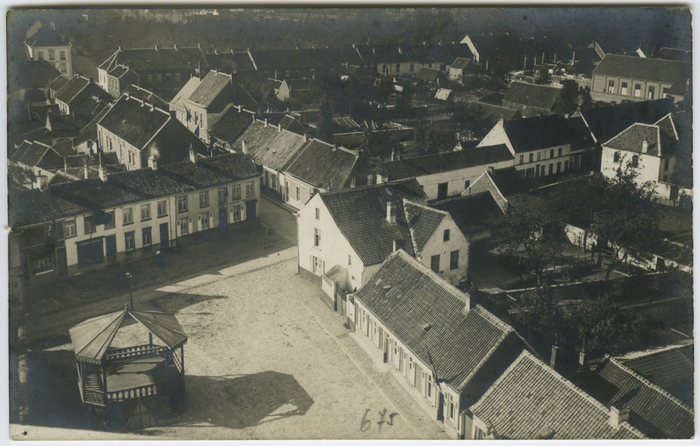 Panoramisch zicht op de dorpskern en dorpsplein van Melle.
