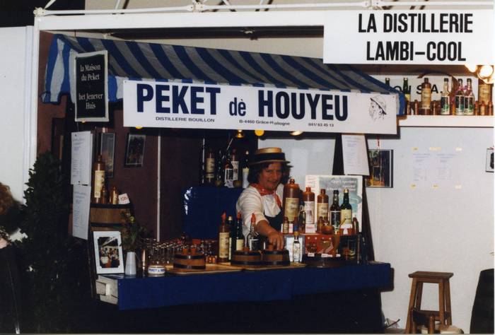Standje in de thematent die in 1996 in het teken stond van Waalse landbouw. Er was toen een samenwerking met Libramont en hun beurs, in het teken van landbouw, dierenkeuringen en streekproducten. Waalse producten en trappistenbier Orval waren vertegenwoordigd in de thematent. Hier een stand van Peket, een soort jenever.