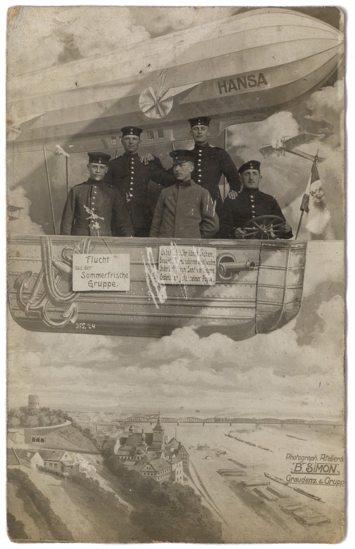 Zeppelin en soldaten, 1913