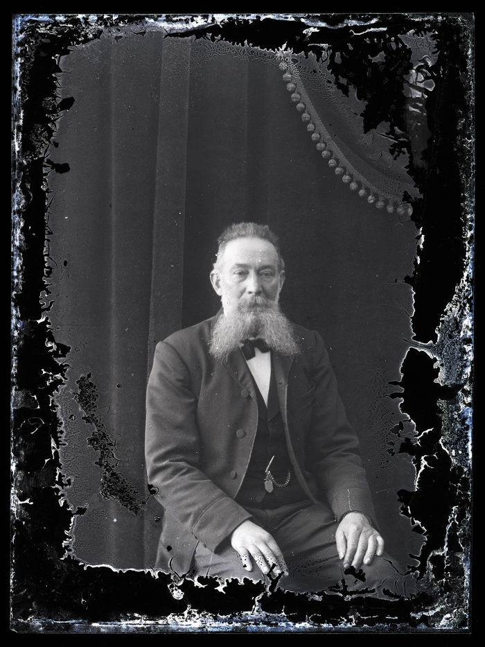 Zittend portret van man met baard en snor, Melle, 1910-1920